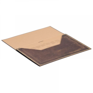 Reproduciendo las exquisitas encuadernaciones de estilo renacentista, la cubierta de la carpeta modelo Sierra rinde homenaje a la artesanía de delicados frisos dorados. Para este diseño de la colección Cuero Antiguo, hemos elegido un fondo marrón muy rico inspirado al color de un sillín envejecido que aporta consistencia a su aspecto general.