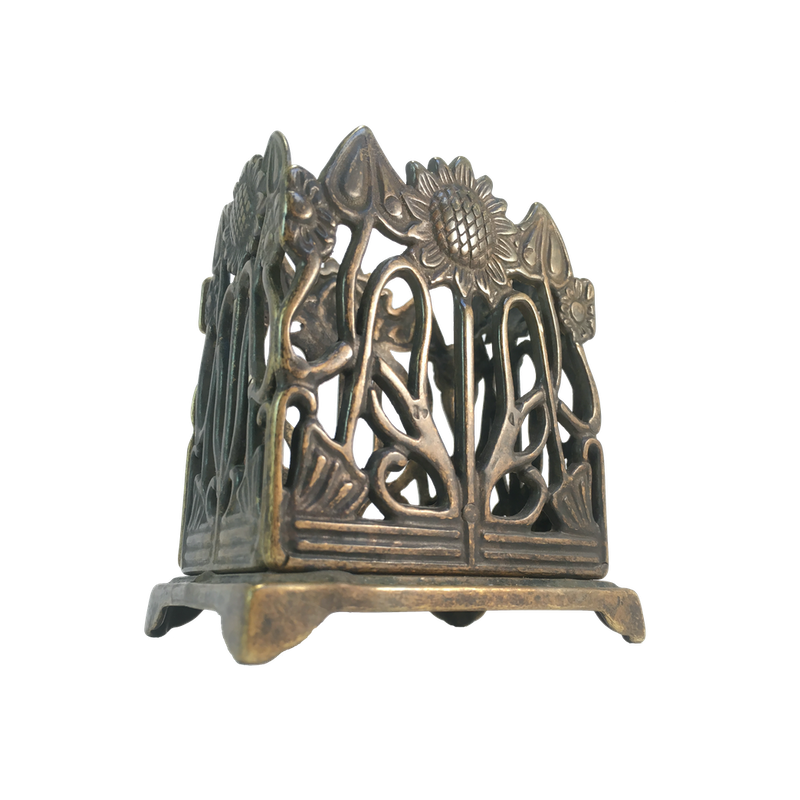 Ya sea para colocar lápices, gomas y demás objetos de escritura, aportará un toque decorativo a cualquier rincón de tu estancia. El cubilete está realizado en latón y con un fino baño en color dorado envejecido.