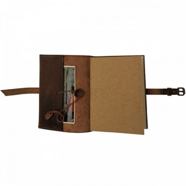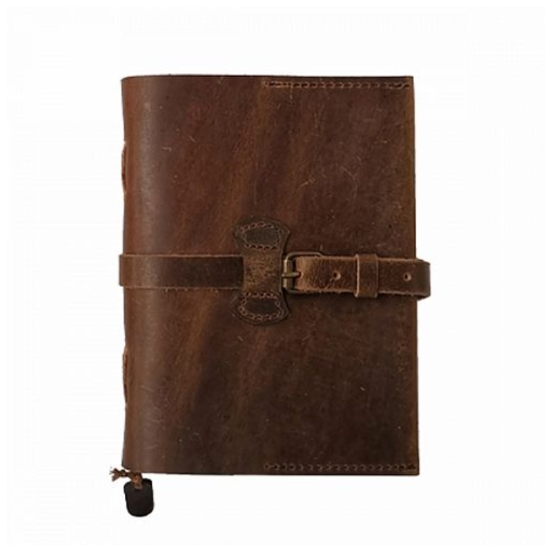Precioso diario artesanal fabricado en piel curtida y con cierre en broche. Para anotar pensamientos, tareas y todo lo que imagines.