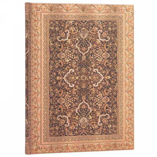 Este diseño evoca la tradición moldava del tejido de alfombras. Inspirándose en ideales de belleza y armonía con toques de mitología y misticismo, los artesanos moldavos convierten este objeto cotidiano en toda una obra de arte. La cubierta Terrenal recrea un diseño de Floare Carpet, fabricante de alfombras contemporáneo.