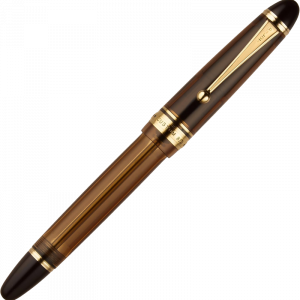 Preciosa pieza en estilo clásico y realizada en preciosa resina acrílica transparente de color ámbar, que permite ver tanto el mecanismo interno como el nivel de tinta disponible. Su plumín está realizado en oro macizo de 14kts y es de los más grandes de la marca y está grabado con una preciosa serigrafía clásica. Se alimenta con un mecanismo poco frecuente de carga por vacío