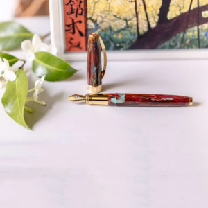 La Visconti Van Gogh Flowering Plum Orchard es una pluma estilográfica que celebra la sensibilidad y el color vibrante de la obra Huerto de Ciruelos en Flor, pintada por Vincent van Gogh durante su etapa de inspiración japonesa.