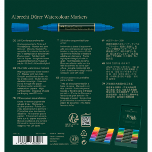 Los marcadores acuarelables para artistas son la versión moderna de la pintura a la acuarela: un instrumento de dibujo de alta calidad que facilita el boceto espontáneo y la pintura de acuarela artística. La tinta a base de agua siempre está lista para usar y también se puede mezclar completamente con agua. La versatilidad de estos marcadores es especialmente convincente cuando se viaja. Aquellos a quienes les gusta recordar las impresiones de su viaje estarán encantados de poder usar estos marcadores.