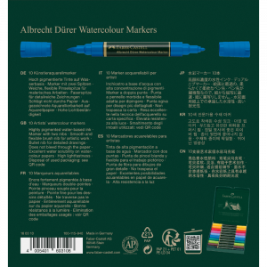 Los marcadores acuarelables para artistas son la versión moderna de la pintura a la acuarela: un instrumento de dibujo de alta calidad que facilita el boceto espontáneo y la pintura de acuarela artística. La tinta a base de agua siempre está lista para usar y también se puede mezclar completamente con agua. La versatilidad de estos marcadores es especialmente convincente cuando se viaja. Aquellos a quienes les gusta recordar las impresiones de su viaje estarán encantados de poder usar estos marcadores.