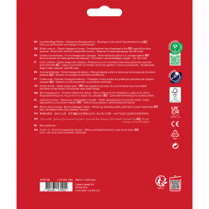 Lápices de color permanentes en tamaño estándar y forma hexagonal. Vívidos colores y un proceso de unión que los hace resistentes a quebraduras. Los lápices de color clásicos vienen disponibles en hasta 60 colores diferentes.