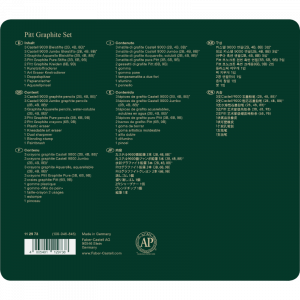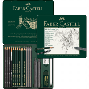 La gama Pitt de Faber-Castell ofrece al artista creativo un completo surtido de lápices y tizas de diferentes graduaciones para bocetos, sombreados y diseños gráficos. El «lápiz verde de Faber», así conocido por artistas de la talla de Van Gogh y Goethe, forma ya parte de nuestra vida diaria. La gama de 16 graduaciones va del gris tenue al negro grafito intenso, ofreciendo al artista toda una gama de posibilidades. Las minas de grafito puro Pitt son perfectas para crear contrastes y sombrear grandes áreas. Las tizas grafito Pitt son el compañero perfecto para trabajar grandes áreas.