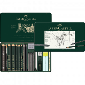 La gama Pitt de Faber-Castell ofrece al artista creativo un completo surtido de lápices y tizas de diferentes graduaciones para bocetos, sombreados y diseños gráficos. El «lápiz verde de Faber», así conocido por artistas de la talla de Van Gogh y Goethe, forma ya parte de nuestra vida diaria. La gama de 16 graduaciones va del gris tenue al negro grafito intenso, ofreciendo al artista toda una gama de posibilidades. Las minas de grafito puro Pitt son perfectas para crear contrastes y sombrear grandes áreas. Las tizas grafito Pitt son el compañero perfecto para trabajar grandes áreas.