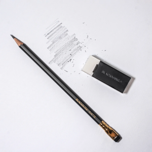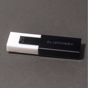 El borrador está hecho de un material suave especial que borra las líneas oscuras de nuestro grafito de forma limpia y sencilla. El soporte está hecho de aluminio resistente, lo que permite un agarre firme al borrar. También incluye una versión extragrande del icónico clip Blackwing, para que puedas extender el borrador mientras lo usas.