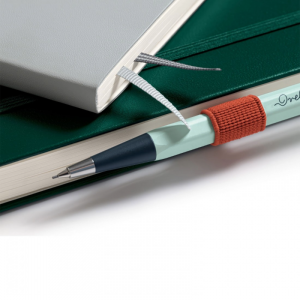 El Pen Loop no solo es extremadamente práctico, sino también un accesorio de diseño muy versátil. Con su superficie autoadhesiva, se fija en la parte posterior de la libreta y, gracias a su fuerte banda elástica de tela, mantiene los instrumentos de escritura siempre a mano, ya sea un lápiz delgado o un bolígrafo hexagonal.