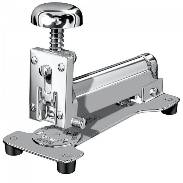 Grapadora de sobremesa acabada en baño de cobre níquel y cromo brillante.