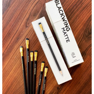 Ideal para músicos, carpinteros o cualquier persona que prefiera un trazo suave y oscuro, el Blackwing Negro Mate es el más suave de la gama de los modelos de Blackwing. Estos lápices cuentan con un atemporal acabado negro mate y gomas de borrar negras.