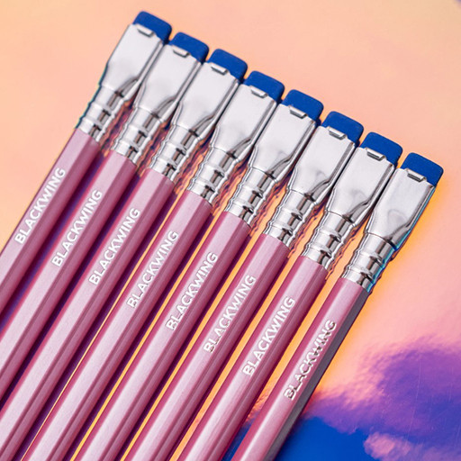 El popular Blackwing Pearl está ahora disponible en un precioso color rosa perlado con nítida seriagrafía y agarre trasero en plateado y goma de borrar en color azul brillante. La combinación de color es ideal y hacen que el acabado perlado acompañado con el mate se transforme en una combinación armoniosa y elegante.