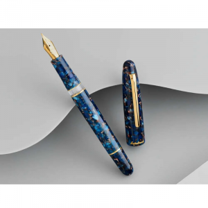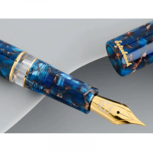 ¡Ahora con mecanismo de émbolo! Esterbrook Estie Nouveau Bleu rinde homenaje al artista checo Alphonse Mucha de principios del siglo XIX. Se hizo famoso por sus figuras femeninas idealizadas que a menudo se basaban en estrellas de cine parisinas y celebridades, y su trabajo incluyó sus años de estudio, dibujo y pintura de la actriz e ícono de cine, Sarah Bernhardt. Utilizó el color azul como con el objetivo de iluminar los cielos, dar alas y rodear con olas de agua. La pieza se ofrece en acabados dorado y cromado. El material del cuerpo está es una mezcla de azules de Mucha y un acabado muy pulido.