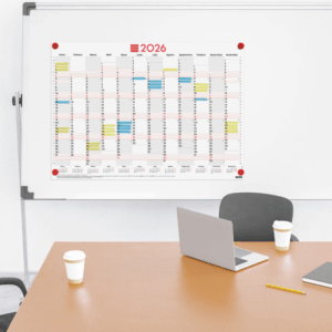 Póster planificador anual con doble funcionalidad a escoger: en una cara, los meses del año organizados por columnas, y en la otra cara, organizados por filas. En la parte inferior del póster también se muestran los 12 meses resumidos. Con información útil: número de semana, festivos nacionales, días señalados y cambios de estación. Papel de muy alto gramaje. Ideal para disponer en la pared y planificar de un vistazo todo el año. Adecuado también para la planificación de equipos y proyectos.