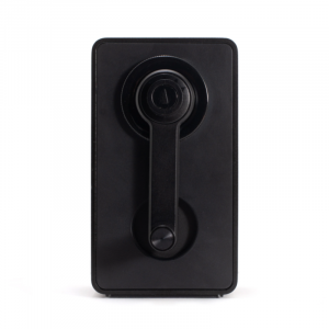 El afilador está protegido por una resistente carcasa de metal y polímero negro mate, elegante y robusta. También cuenta con un cajón para vaciar las virutas que se encaja con un agradable *clic*.