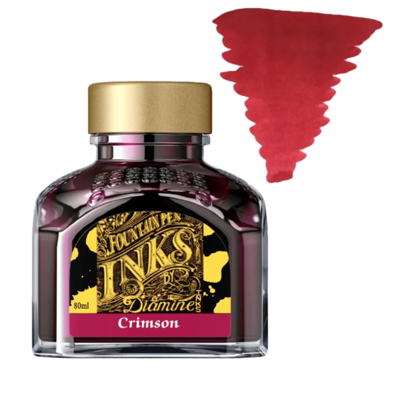 La fórmula a base de agua de Crimson es compatible con todas las plumas estilográficas y permite una limpieza sencilla. No es resistente al agua, por lo que se recomienda principalmente para escritura diaria, journaling, correcciones, títulos destacados y caligrafía moderna.
