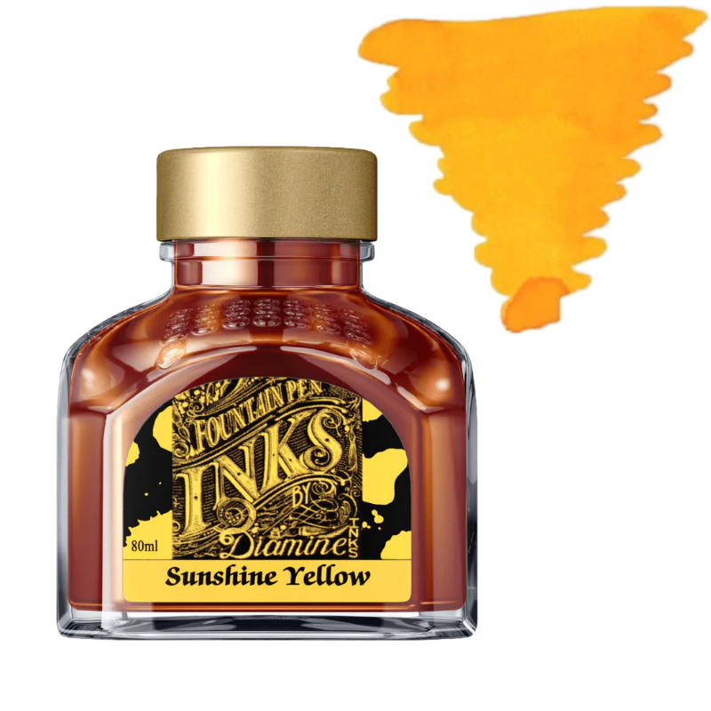 Diamine Sunshine Yellow es una tinta para pluma estilográfica de un amarillo brillante y luminoso que evoca la energía y calidez de la luz del sol. Su tonalidad clara y vibrante aporta frescura y vitalidad a la escritura, siendo ideal para quienes buscan añadir un toque alegre y distintivo a sus notas o proyectos creativos.